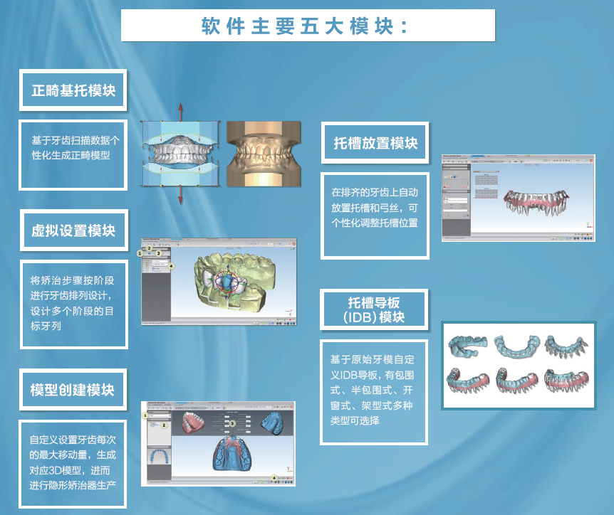 數(shù)字化隱形矯治技術(shù)是目前較受醫(yī)生和患者關(guān)注和歡迎的矯正技術(shù),為了讓臨床醫(yī)生能快速掌握數(shù)字化隱形矯正技術(shù),并能在門診輕松實現(xiàn)隱形正畸的整套治療,北京云尚智造聯(lián)合德國3D打印廠商EnvisionTEC針對臨床醫(yī)生推出數(shù)字化隱形矯正套裝,套裝包含:口腔掃描儀、?正畸設(shè)計軟件、?3D打印機、?壓模機及相應(yīng)的培訓(xùn)及服務(wù)。