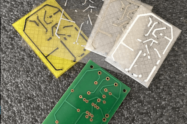 將混合電子 3D 打印用于 2D 打印應用程序。在印刷電路板上用金色油墨打印。用銀漿打印互連。在玻璃上制作一個線性空間陣列,在卡普頓上打印線圈。可能性是無限的。